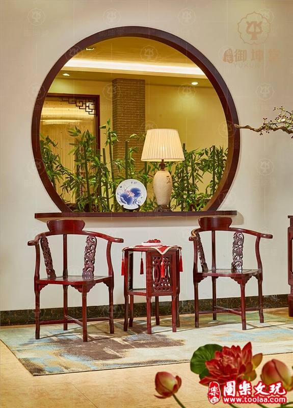 此情侣椅三件套以小叶红檀为材,四分之一的圆设计,拼起来就是一半,象征你就是我的另一半。