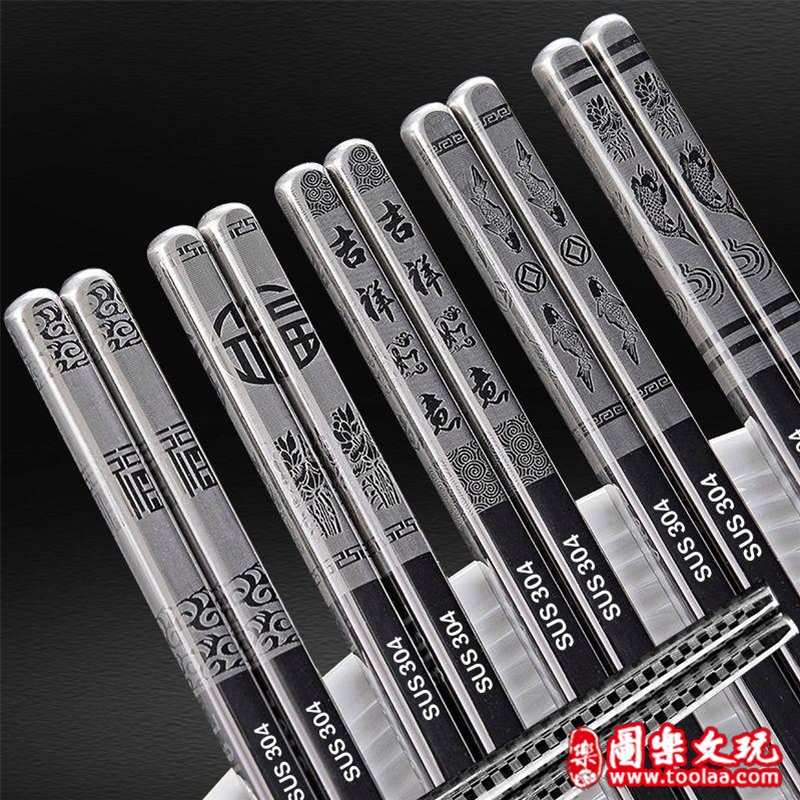 激光雕刻的纹路是非常的浅,用手仔细触摸都能感觉到有凹凸,这样一来筷子很容易清洗干净,不会藏污纳垢,不仅美观也实用。