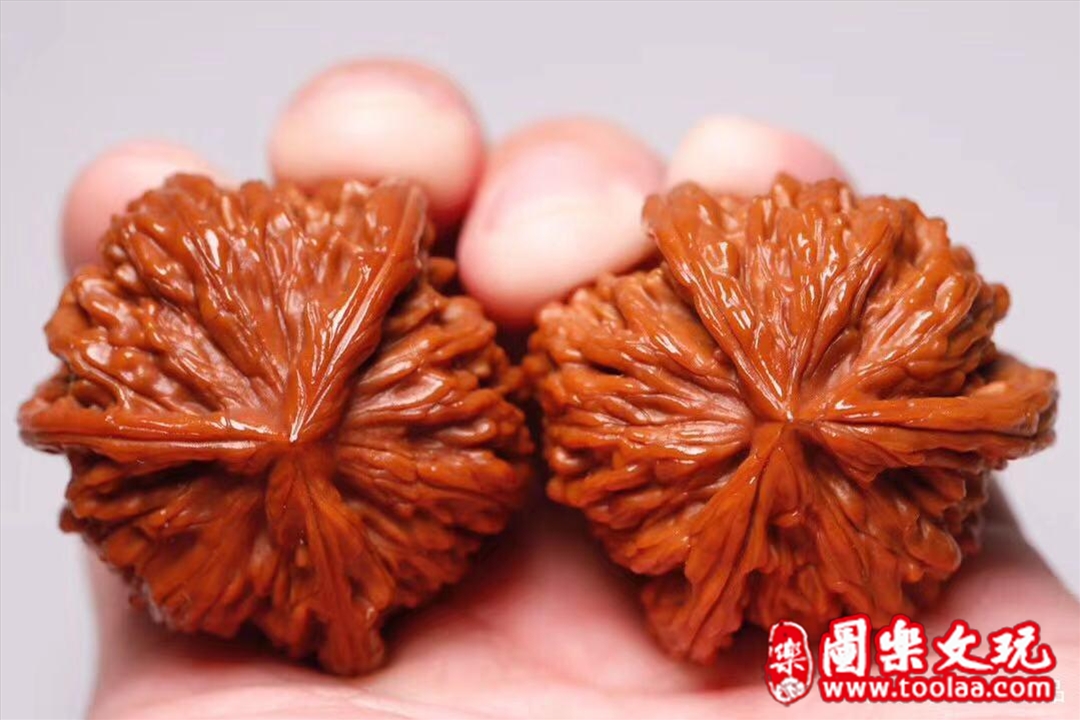 4、形状偏的居多。不是每个三棱都是很周正、立得很直。有不少三棱形状偏、弯曲。兜边的核桃也比较常见。也有个别核桃三道棱粗细不均。