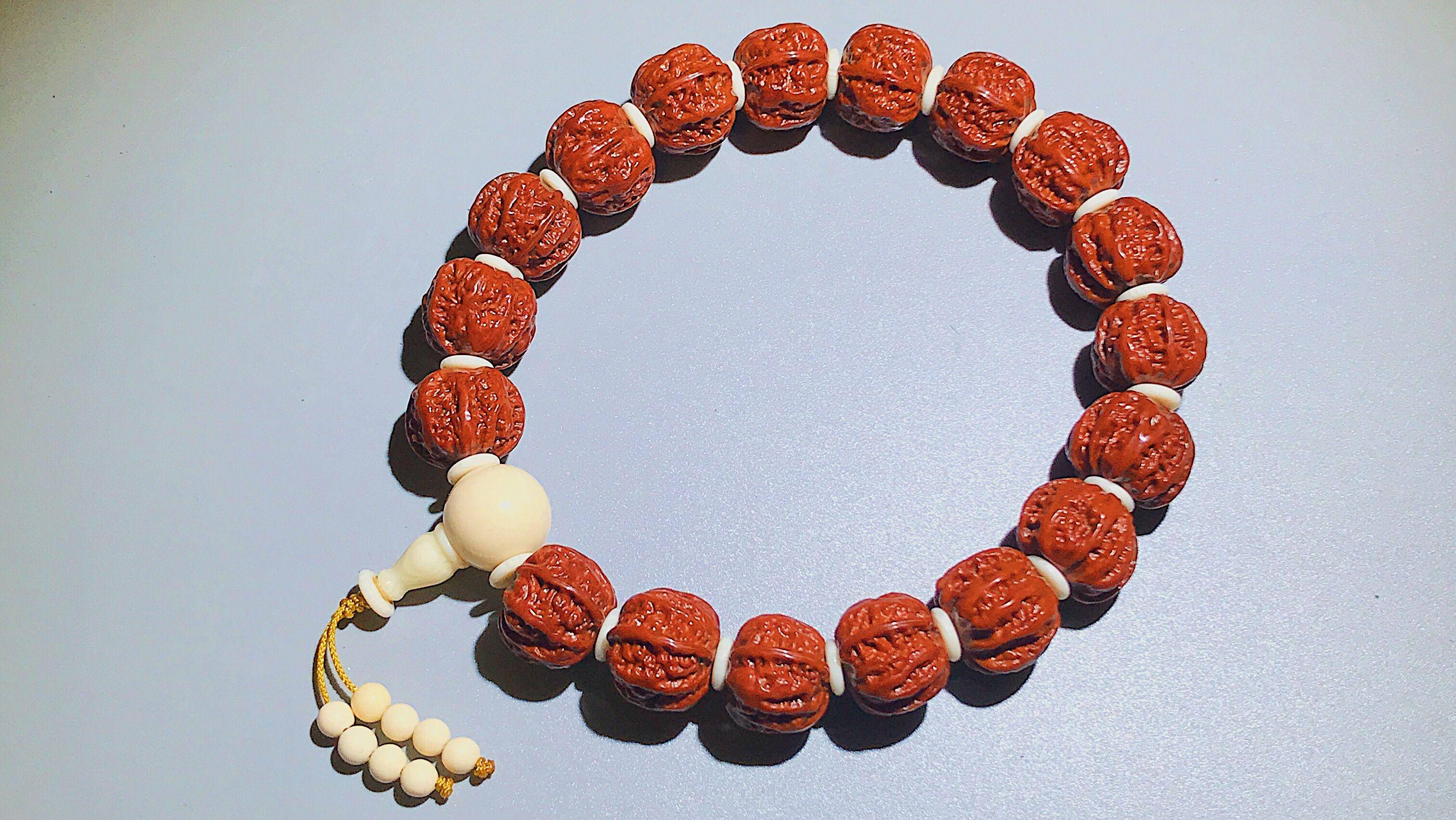 那我也站在发明打底这个人的角度,是这么理解的,现在确实很多串它的质量不过关,把什么生的、熟的、半生不熟的全给你串到一起,这一沾汗、一上色它可一下就原形毕露了,那怎么办呢?那咱就阻止它上色那不是就不会花了吗?你们说这招损不损?当然还有很多人说,他们是为了拖过7天无理由退换,咱就仁者见仁了,那随后有些文玩商家就为了撞盖金刚和核桃的颜色不均匀。