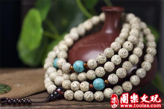 随后可以直接将108颗星月菩提珠串入绳子里,将所有的星月菩提珠串好后,要把鱼线左侧对折后,穿入三通珠中间的孔,再将鱼线右侧对折,穿入三通珠中间的孔。