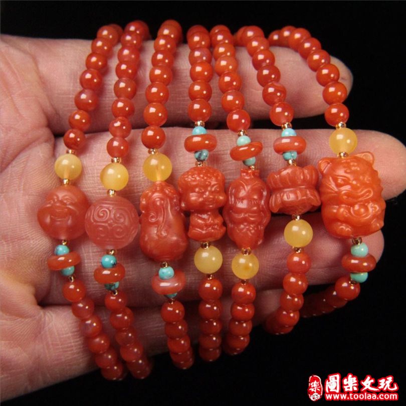 南红玛瑙是文玩手串中比较常见的一种材质,它的颜色比较深沉、质地崎岖,非常有质感和重量感。另外,南红玛瑙还有着深厚的文化内涵,很多人相信佩戴南红玛瑙手串可以增加自己的人缘和财气,因此备受人们的追捧。