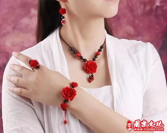 在一种珠宝中,朱砂凭借其华丽的色泽,靓丽的颜色受到了一大批女性的喜爱,戴在身上有很好的装饰作用,显得整个人高贵又大气,给人增添了几分迷人、奢华的气质。