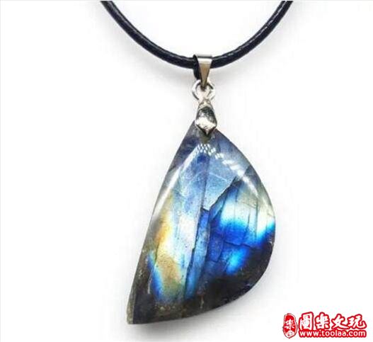 产自马达加斯加的天然拉长石,其原石的蓝色和紫色荧光非常吸引人,打磨后,多显现彩虹的光泽度,深受女性朋友喜欢。