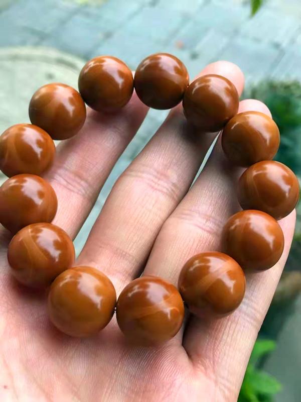 橄榄核正圆光珠手串的巨大魅力,就在于:盘玩出来的颜值非常高,基本都非常惹人喜爱,可能盘玩出来的颜色会有所不同,但是都是非常美丽的,这可能也是橄榄核的魅力所在吧!