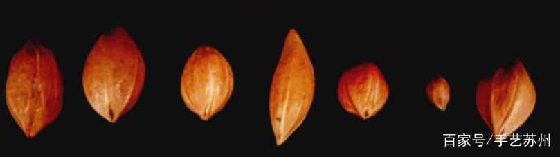 核雕用的橄榄核都是经过精挑细选的,挑选也是一门学问。有的核料个头大而饱满,但阴干几天后发现其已自动开裂,这属于天生易裂的品种,有的核料外表发红,阴干后变成糠性核,还有的核很饱满,经过阴干后核质收缩,完全变形。