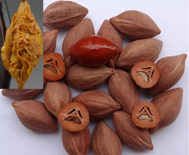 3.梅林核:梅林核特指产于梅林县那种核型长,但并不是所有长在梅林县的核都叫梅林核!只有核型饱满、颜色红润、核质硬度高、核质易玉化且不容易开裂的核,才能被称之为梅林核。由于梅林核只有长核,最适合做单件或者长链,通常的尺寸:宽在21mm+左右,长在40mm+左右。