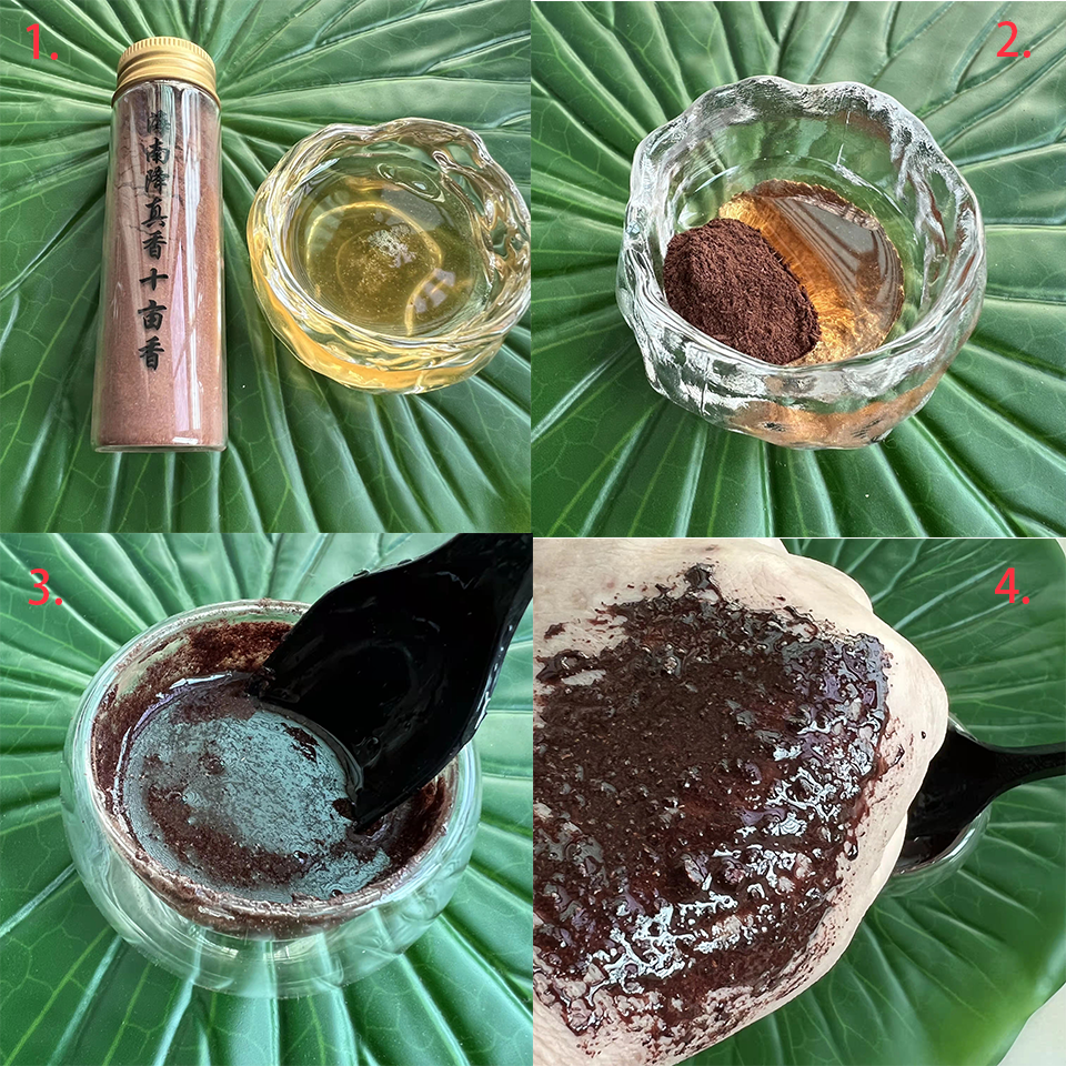 把降真香打成200目以上的细粉拌些许蜂蜜涂于身体各处,可以起到抗菌消炎,抗氧化,促进细胞再生,淡化色斑,防止皮肤老化的效果。