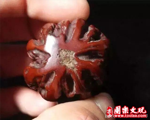 假核桃用胶和化学剂合成的,颜色呆板,红润得不自然,没有晶莹剔透的感觉!底脐部位和尾脐都很新,与老核桃的陈旧感不同!