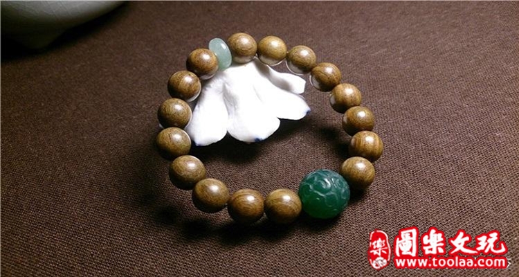 4、其实绿檀木刚开始并不都是绿色的,新珠子一般呈黄褐色,经过盘玩后才会变成绿色,而且盘玩时间越长,绿檀木的颜色也越绿。