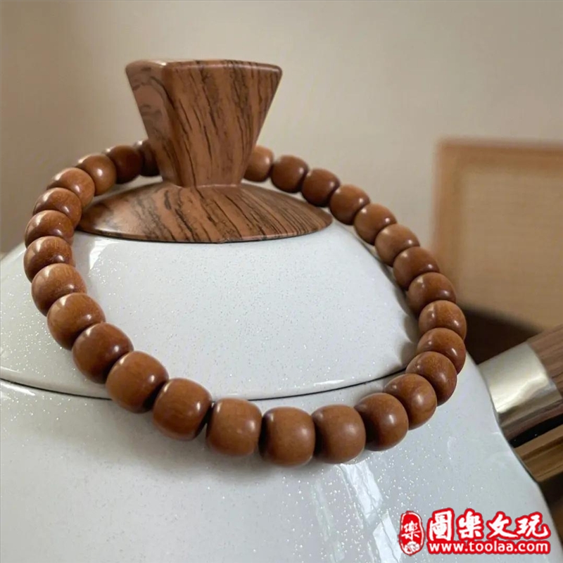 这个就出现矛盾了,而且老山檀香原料一般是越靠近内芯颜色会越深,条纹感也会比较清晰,现在就流行这种原料做出来的所谓的黑肉横纹,但是5年前市场上认可的是外腰料做出来的,生长纹比较浅、干净底色的黄肉的佛珠,而且纯粹分析原料品质的话,肯定是外腰料的肉质要更好一些。