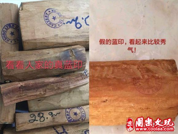 那就不奇怪,很多店家在吹嘘自己的老山檀原木是如何如何的好,出货是如何如何真实的时候,常常会拿一截盖有蓝印或者钢印的原木加以佐证:你看,我这个是盖有蓝印的哦!我这个是盖有钢印的哦!