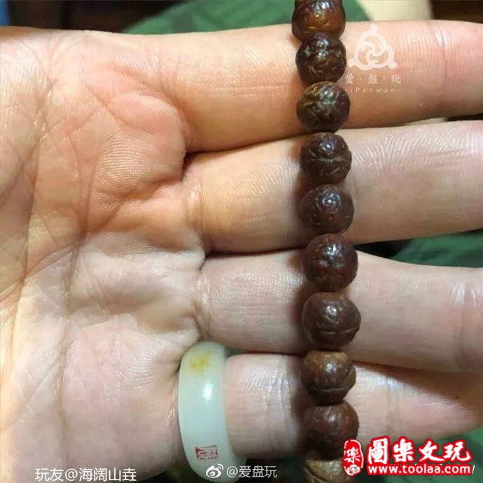 ▲ 玩友@东北麻梨 曾经把盘脏的小凤眼放水里,用鞋刷子沾肥皂刷了两次,珠子干了后都有想扔了的冲动,盘了一天又回到原来的颜色。