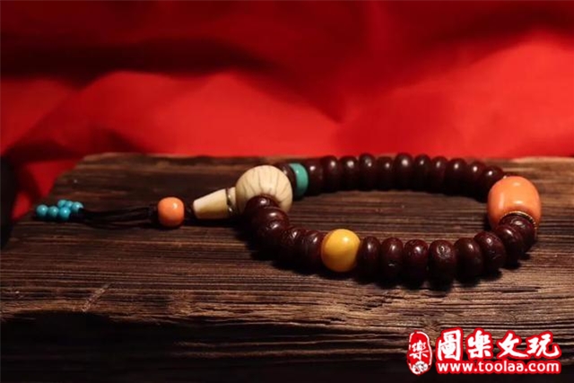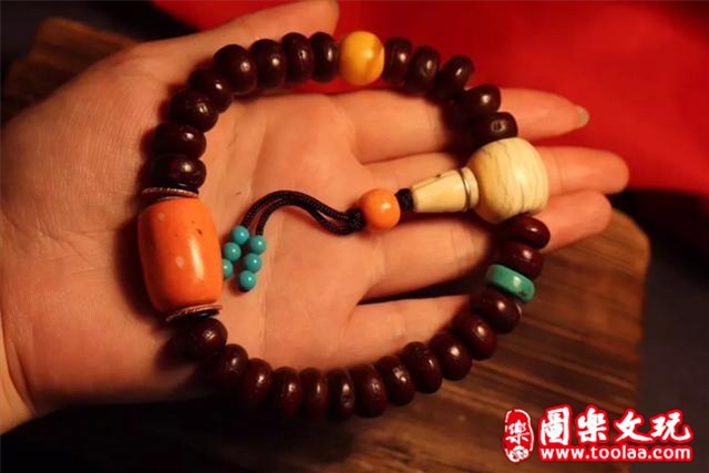 满串尽显沧桑之色,所有的材质的珠子都在用自己的颜色和包浆维护着大局之风采,时光如水,有的东西却能把时间一层一层的堆积起来,形成一串浓厚的蹉跎岁月。