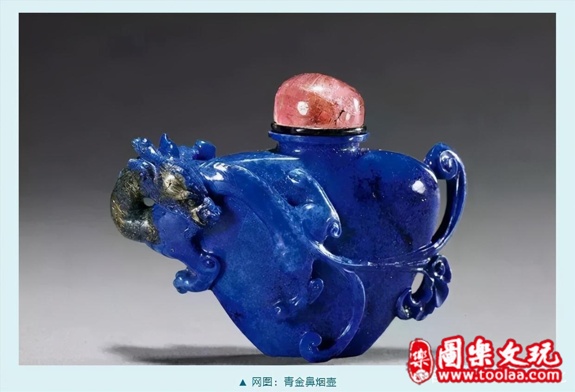 民国时期也有一些上乘的青金石艺术品:如珍藏于中国地质博物馆的青金石山水插屏以及银质镶青金石龙形项圈等。