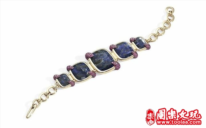 国外的珠宝采用青金石为元素非常常见,上图这款项链就是意大利珠宝商 Luca Carati 推出的新一季珠宝作品,该系列由3个不同主题——「Logo」、「Twenties」、「Cabochon」组成。这推出新作最为特别之处是采用钻石与半宝石进行搭配,例如青金石、孔雀石、红玉髓、缟玛瑙、绿松石等,巧妙利用宝石天然的纹理与色调,营造出丰富的视觉层次。