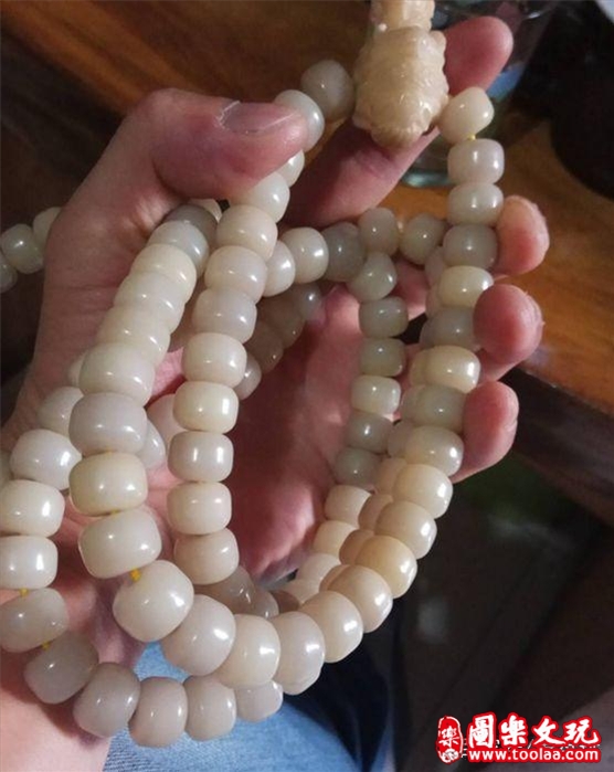 菩提根,一旦上手,必定向黄色变化,它也会遇到尴尬期,特别是开片之后,纹路中经常有黑泥,很难看。