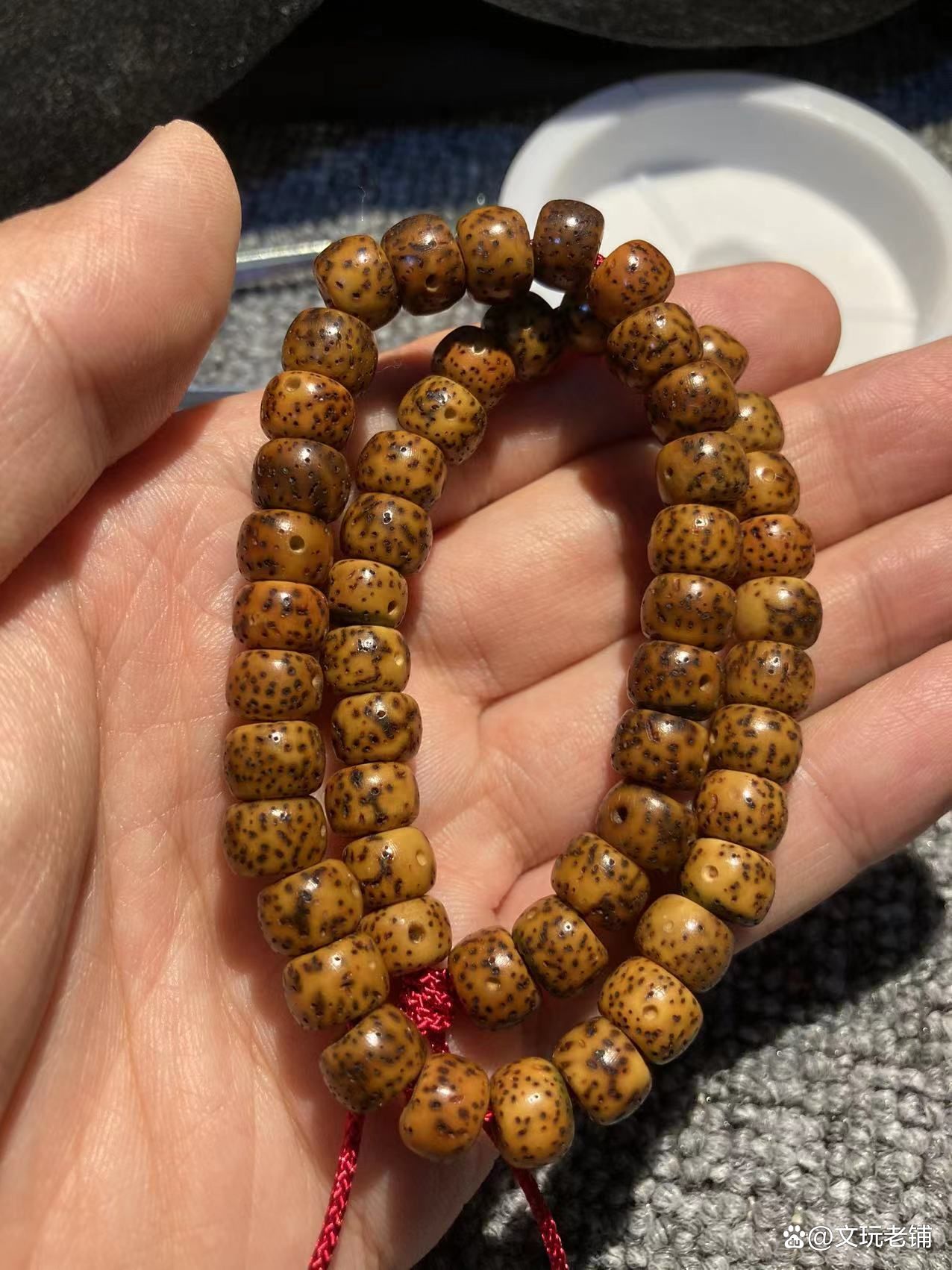 下图的两条珠子,是我盘玩的脱脂顺白,星月并不好,很久之前开始盘的,没舍得丢了,原来是一整条,有色差就拆开了。不过珠子只要盘玩久了,都会变得漂亮。